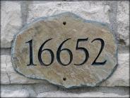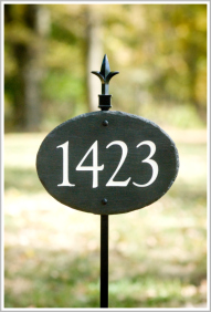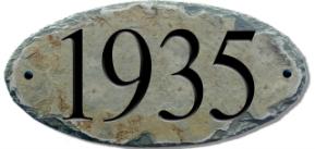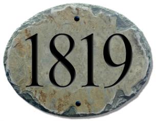 | Verticle Address Plaque This Oval slate is meant for places with a tight squeeze. 3 3/4" x 12" (3 to 4 numbers) #H320..........$45.00 #H330...........$75.00 Additional Info |