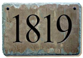 | T. Michael Studios, your Source For: Address Marker, Slate Signs, Slate Plaques, T. Michael Studios Engraved Stone, Carved Stone, Sculpted Slate, Slate Plaques, House Sign, plate marker address arch hand crafted, Address Sign, Number Sign, Garden Decor, Slate Birdhouse, Name plaques, Made in the USA |
