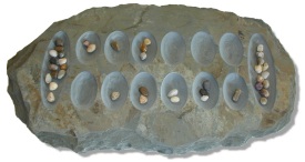 | Mancala An African Count & Capture game played for centuries. Deep in Tradition. Know to be played in Egyptian times. 8" x 12" Very thick, 1"to 1.5" slate. With deep pits to hold stones. #GA200.........................$95.00 |