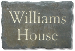| T. Michael Studios, your Source For: Address Marker, Slate Signs, Slate Plaques, T. Michael Studios Engraved Stone, Carved Stone, Sculpted Slate, Slate Plaques, House Sign, plate marker address arch hand crafted, Address Sign, Number Sign, Garden Decor, Slate Birdhouse, Name plaques, Made in the USA |
