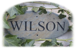 | Engraved English House Plaque A very common style, Last name, very English. Comes with 2 mounting holes. 6" x 9"... #H400.........................$55.00 8" x 11" ...#H410.........................$75.00 Additional Info |